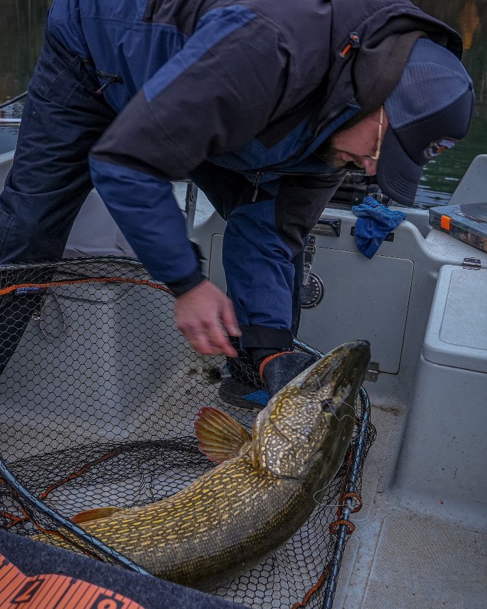 – Pārlieku nenogurdini zivi pirms tās iesmelšanas tīkliņā! Jo ilgāk zivs cīnās, jo vairāk stresa tā piedzīvo, jo lielāks ir risks, ka tā neatkopsies pēc noķeršanas un atlaišanas. Ir svarīgi izvēlēties lielām līdakām atbilstošu inventāru, kas nozīmē pamatīgu auklu, kātu un spoli. Velkot, neatlaid bremzi pārāk vaļīgi!
