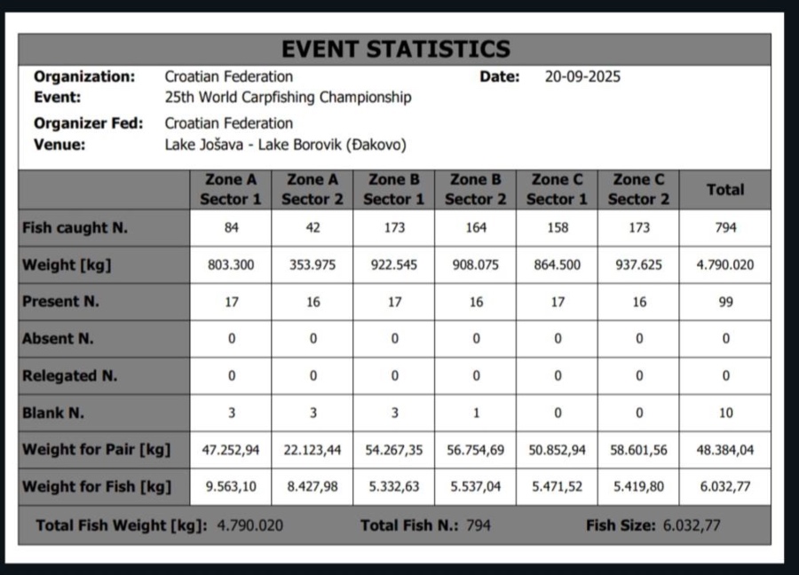Latvijas Makšķerēšanas sporta federācija ziņo, ka no 17. līdz 20. septembrim Horvātijā Dakovā vienlaicīgi divos ezeros (Jošava un Borovik) norisināsies šī gada karpu makšķernieku svarīgākie un gaidītākie mači – 25. Pasaules Čempionāts karpu makšķerēšanā. Uz to devās arī Latvijas vīriešu izlase, kuru pārstāv Aivis Bērziņš, Guntars Melderis (1. pāris), Aleksandrs Batars, Rolands Zunde (2. pāris), Raivo Antrops, Emīls Rudzītis (3. pāris). Rezervē abi Latvijas izlases tālmetēji – Oskars Zeps un Iļja Ibatuļļins. Izlases treneri – Ēriks Tukišs, Normunds Pareizs un speciālists no Lietuvas Arūnas Paluckas.